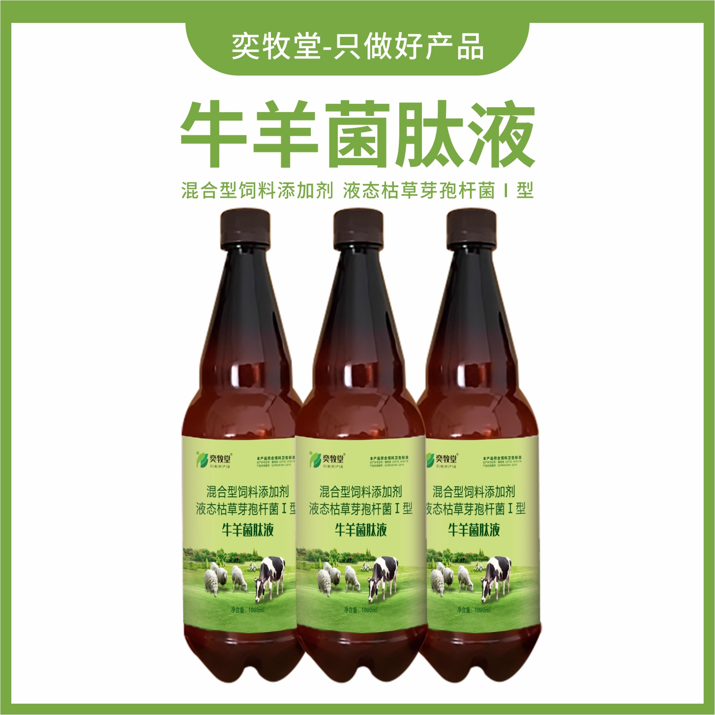拌料:1L菌液可拌料1000斤饲料,先把菌液加20kg水稀释,与饲料搅拌均匀饲喂。